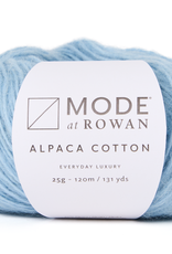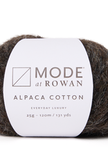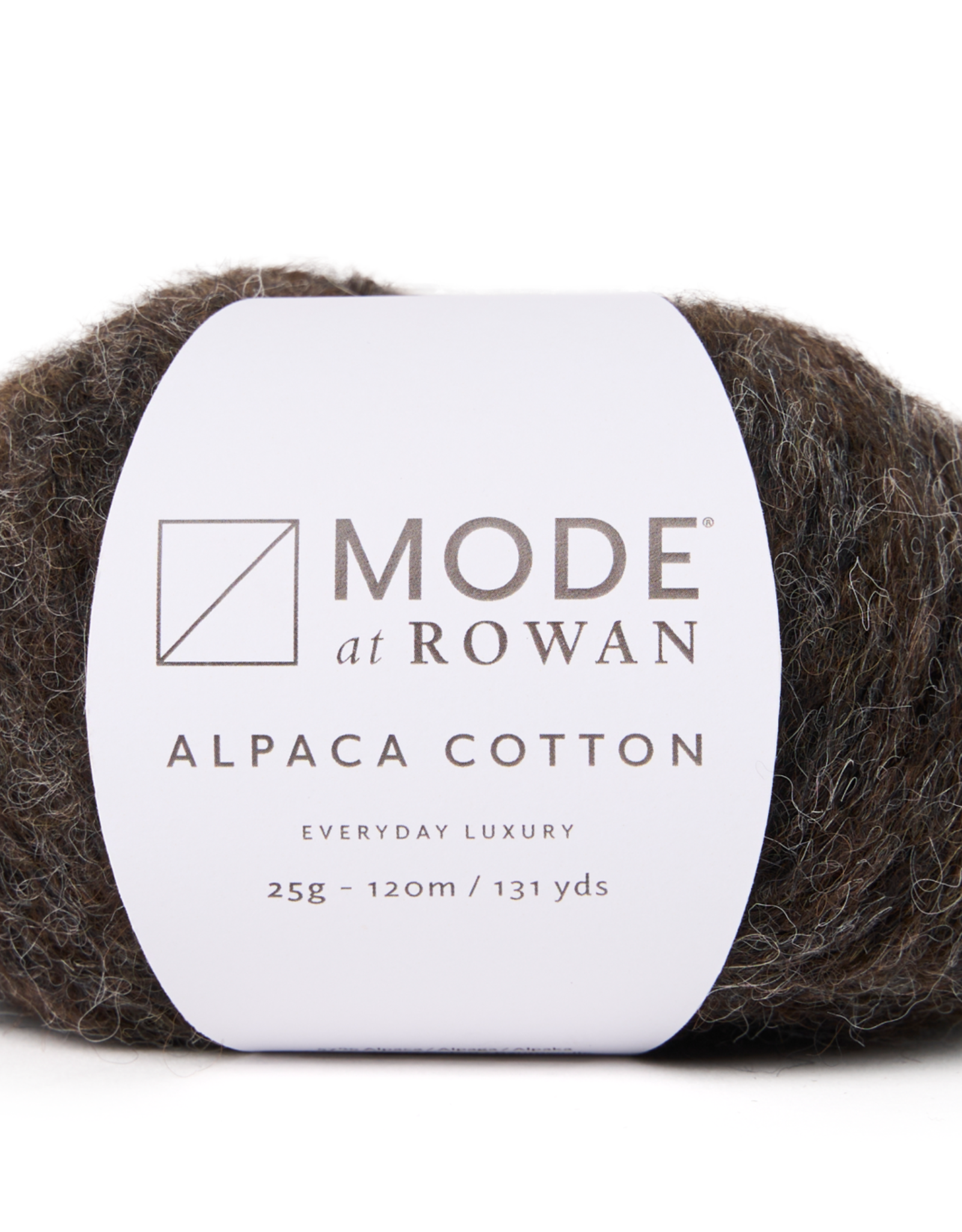 “Alpaca Cotton is a featherlight yarn, showcasing a subtle color palette. Its airy feel and romantic halo are achieved by filling delicate cotton mesh with luxurious alpaca fibers. The result is a lightweight yarn with terrific yardage and spectacular texture.”